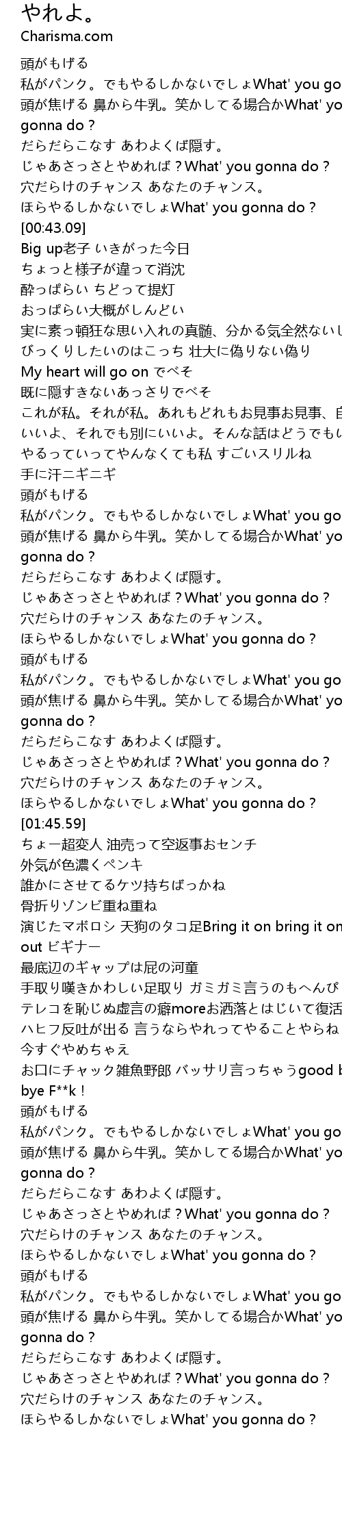 | [01:43.56] | ほらやるしかないでしょWhat' you gonna do? |