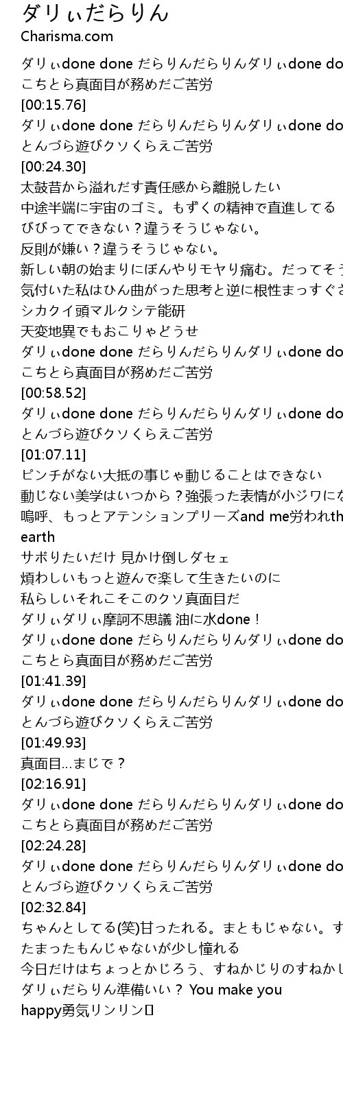 | [01:34.74] | ダリぃdone done だらりんだらりんダリぃdone done |