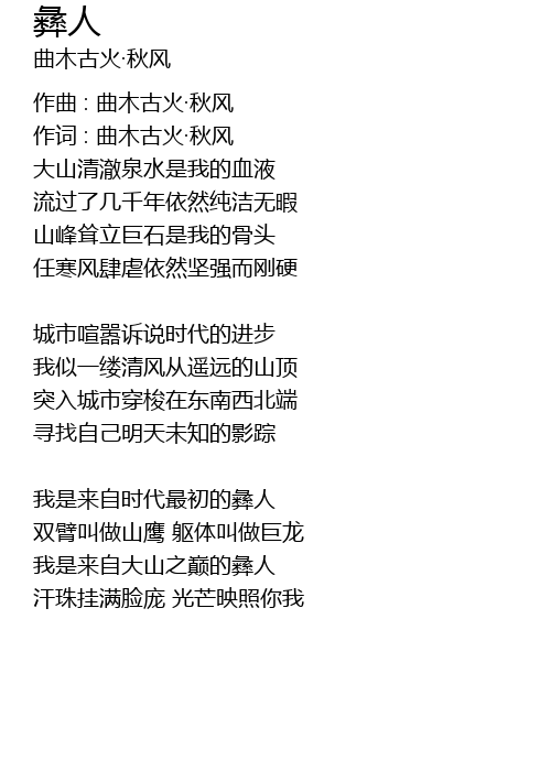 | 作词 : 曲木古火·秋风 | |