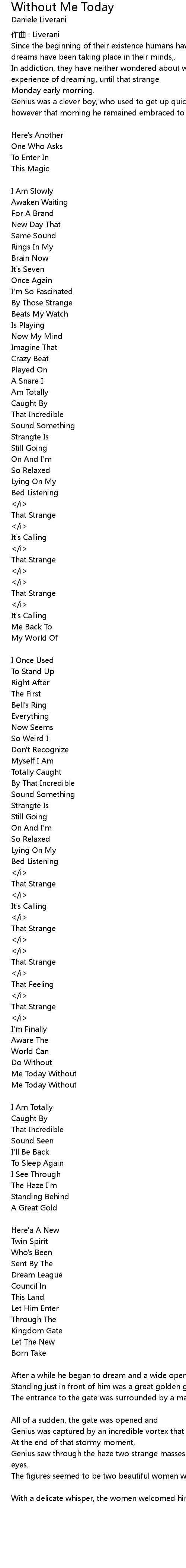 | 歌曲 | Without Me Today |