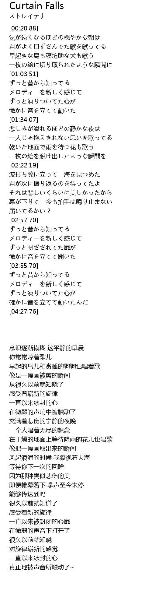 | [02:46.50] | 即便帷幕落下 掌声至今未停 |