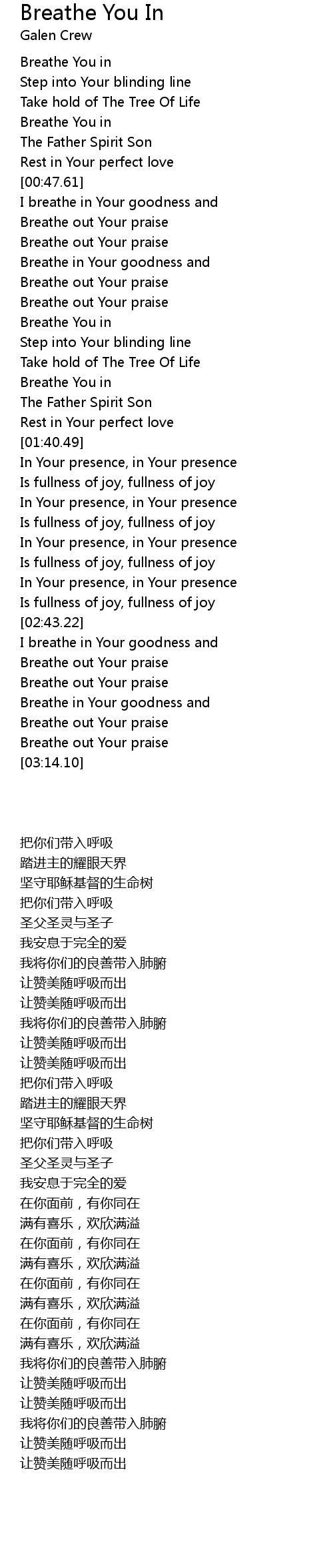 Breathe in Your goodness and |