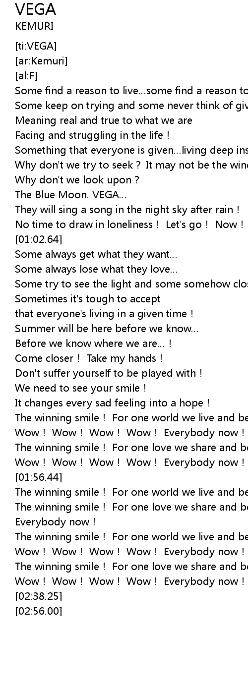 | [02:18.10] | The winning smile! For one love we share and believe in! |