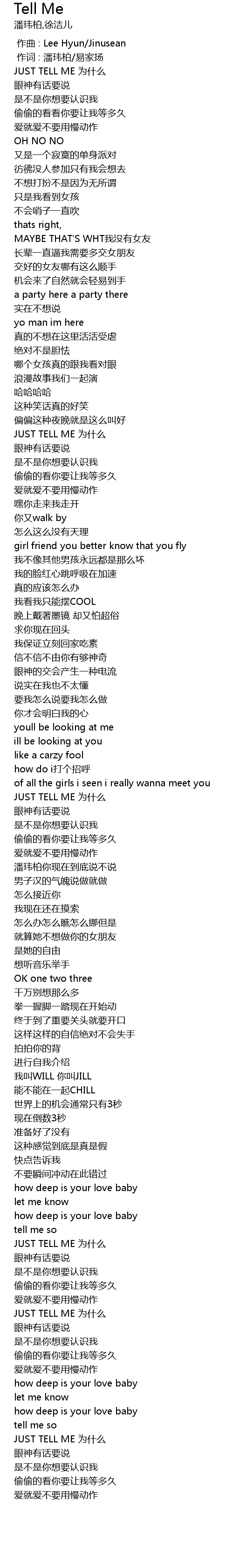 | [00:03.860] | JUST TELL ME wèi shí me |