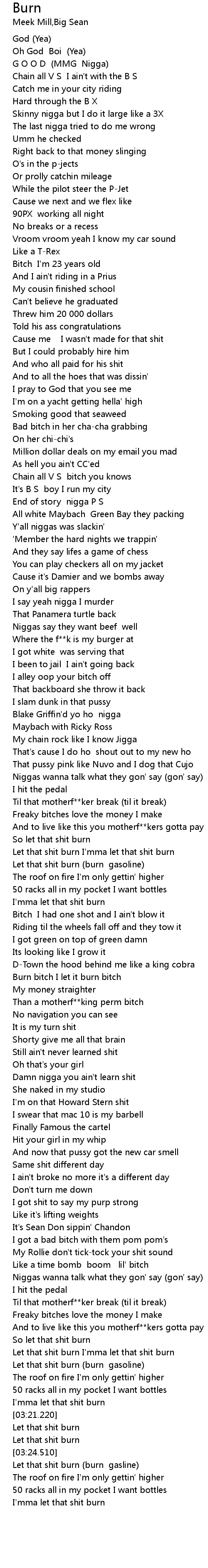 | [03:10.230] | Let that shit burn I'mma let that shit burn |