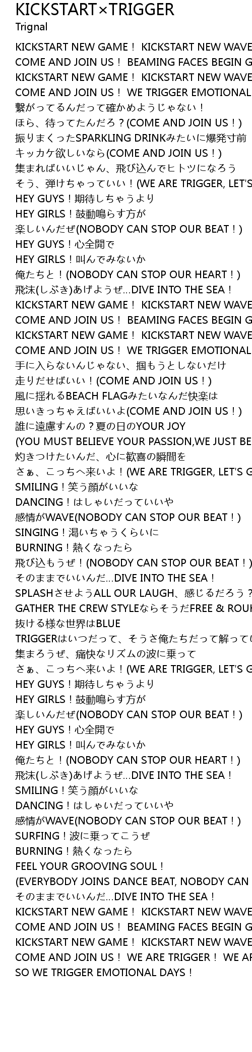 | [02:43.08] | lái! WE ARE TRIGGER, LET' S GO! |