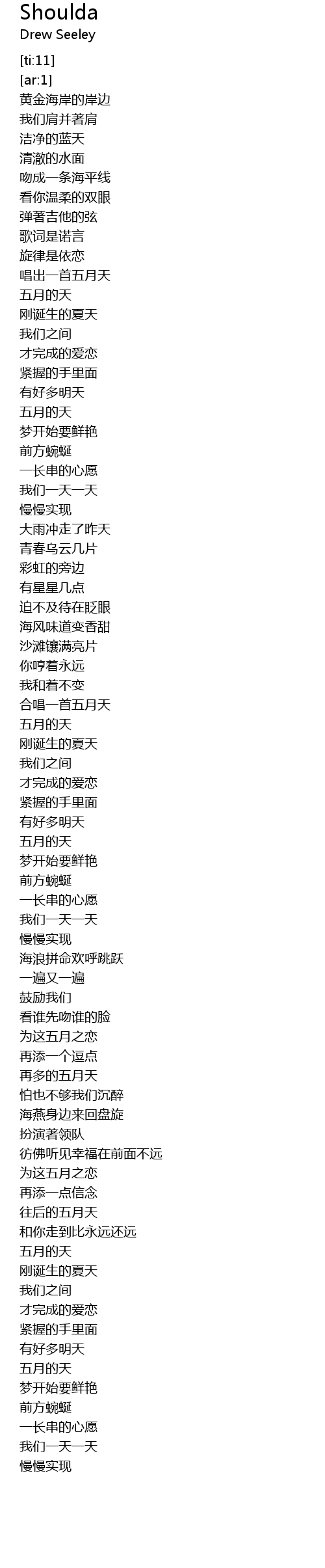 | [00:55.243] | 五月的天 |