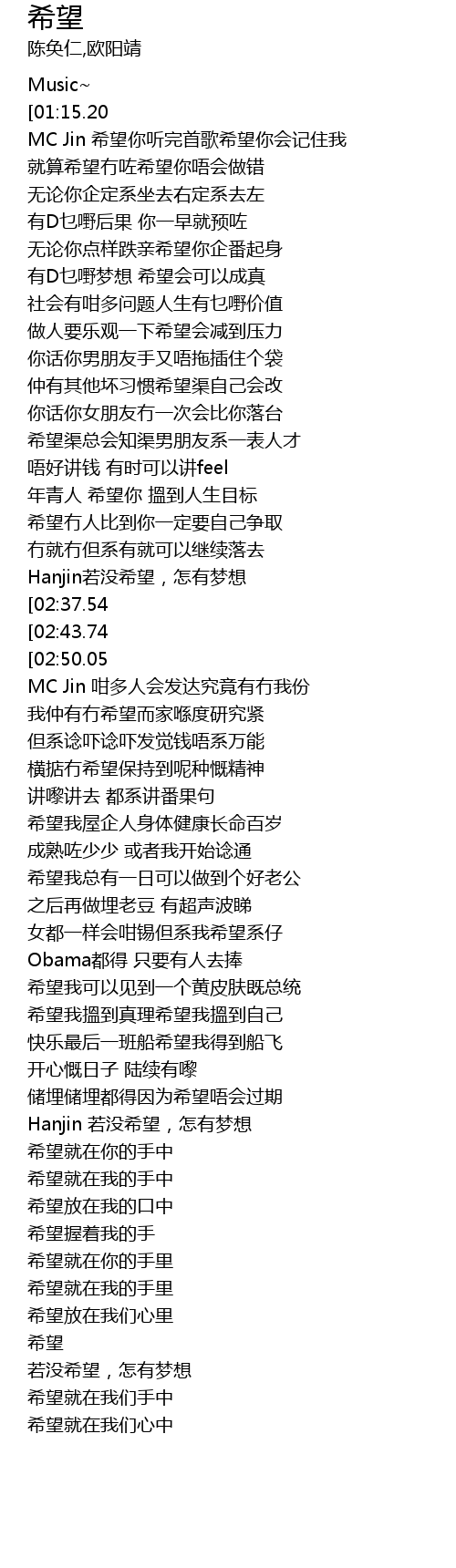| [02:31.40] | Hanjin 若没希望,怎有梦想 |