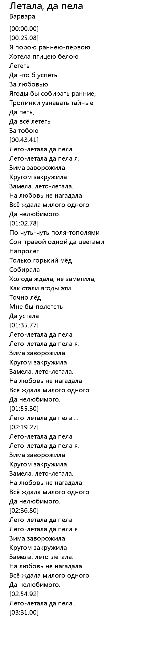 Лето-летала да пела я. |