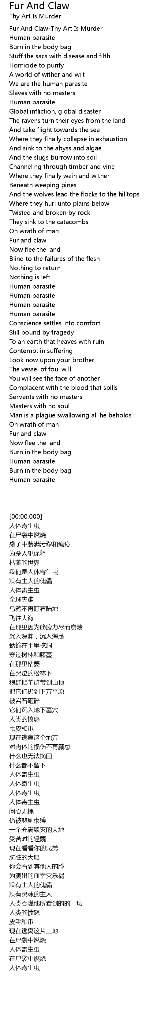 Fur And Claw-Thy Art Is Murder |