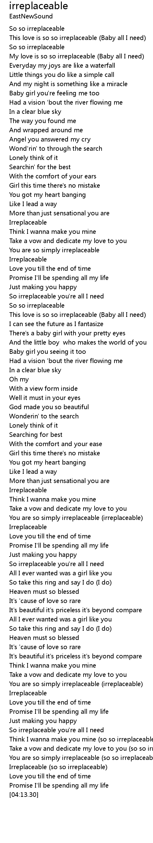 This love is so so irreplaceable (Baby all I need) |