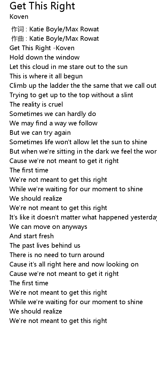 | [00:00.66] | Get This Right Koven |