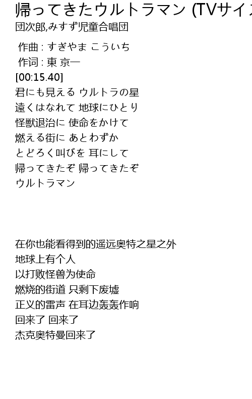 | [00:49.65] | 杰克奥特曼回来了 |