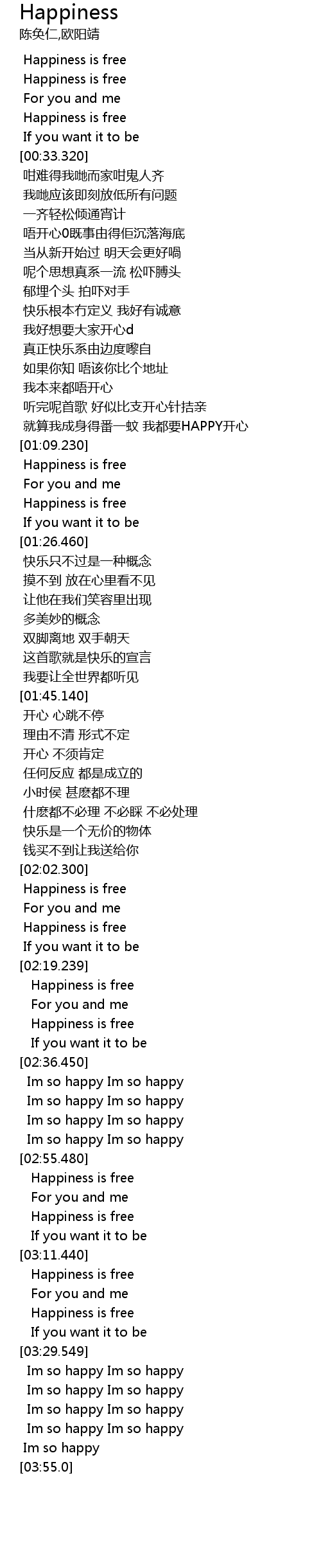 | [00:53.360] | kuài lè gēn běn mǎo dìng yì wǒ hǎo yǒu chéng yì |