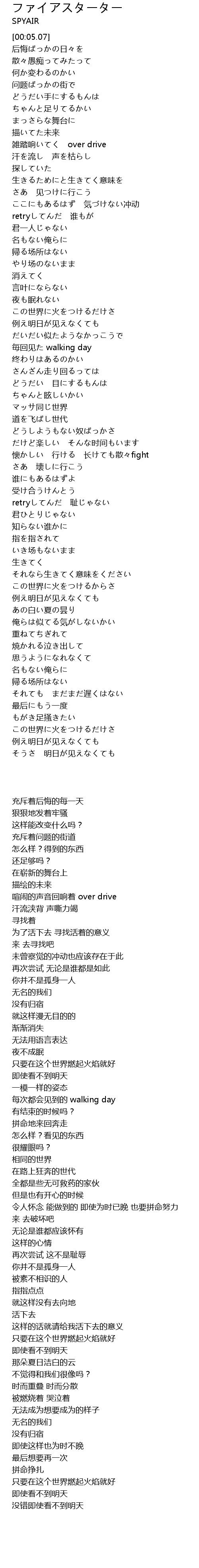 | [00:48.31] | 雑踏响いてく over drive |