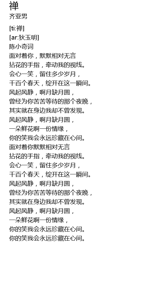| [00:06.65] | chén xiǎo qí cí |