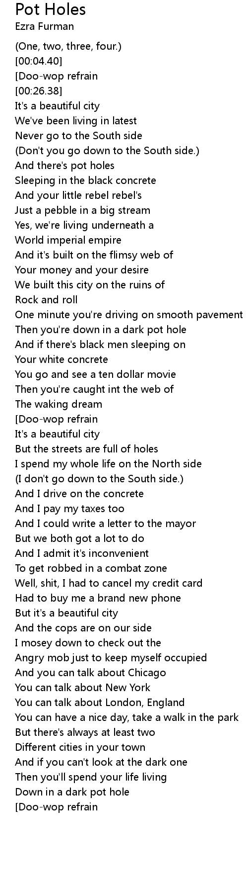 Then you're down in a dark pot hole |