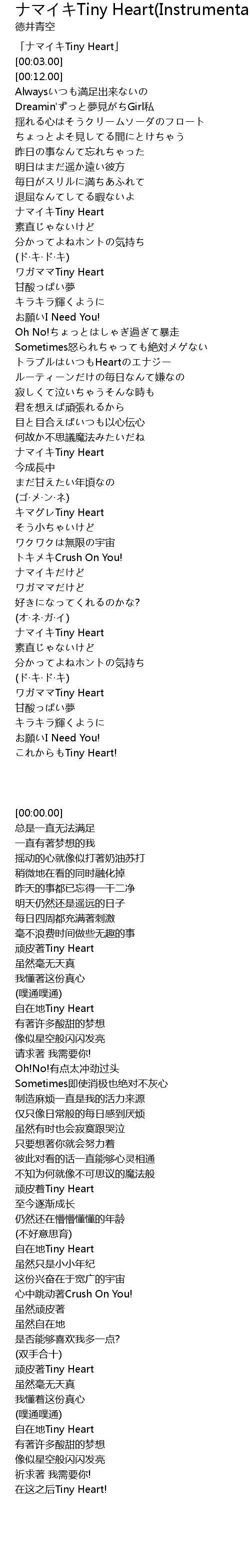 | [00:00.00] | 「ナマイキTiny Heart」 |