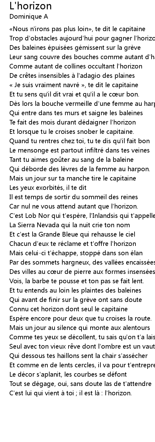 | Chacun d' eux te re clame et t' offre l' horizon | |