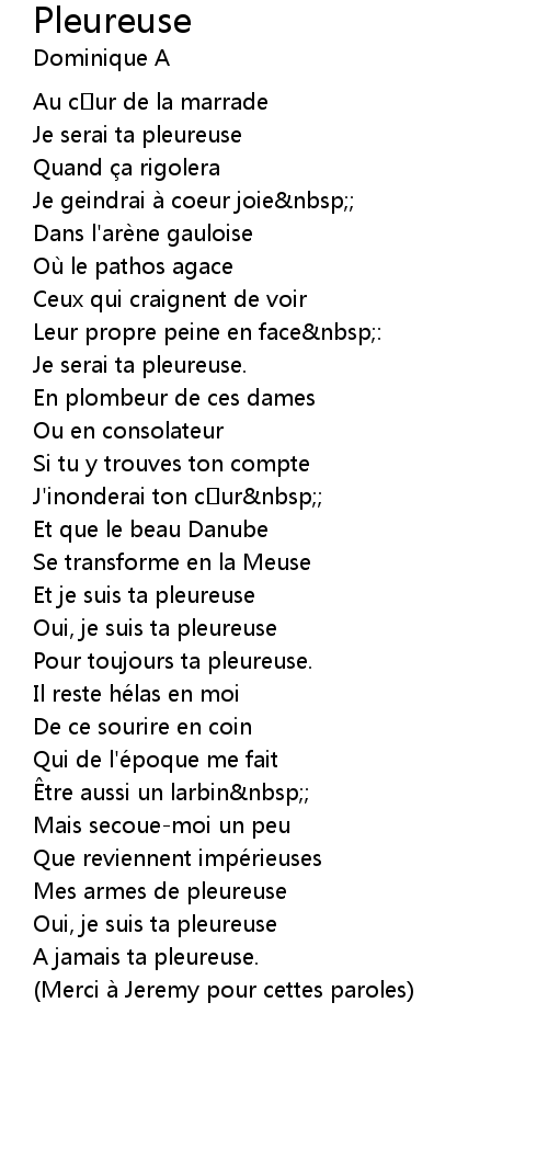 | Je serai ta pleureuse. | |