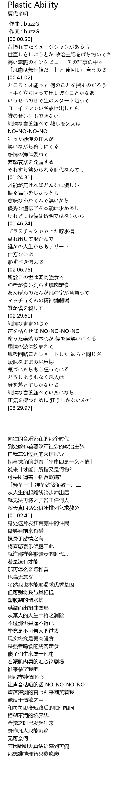 | [00:43.85] | ところで才能って 何のことを指すのだろう |