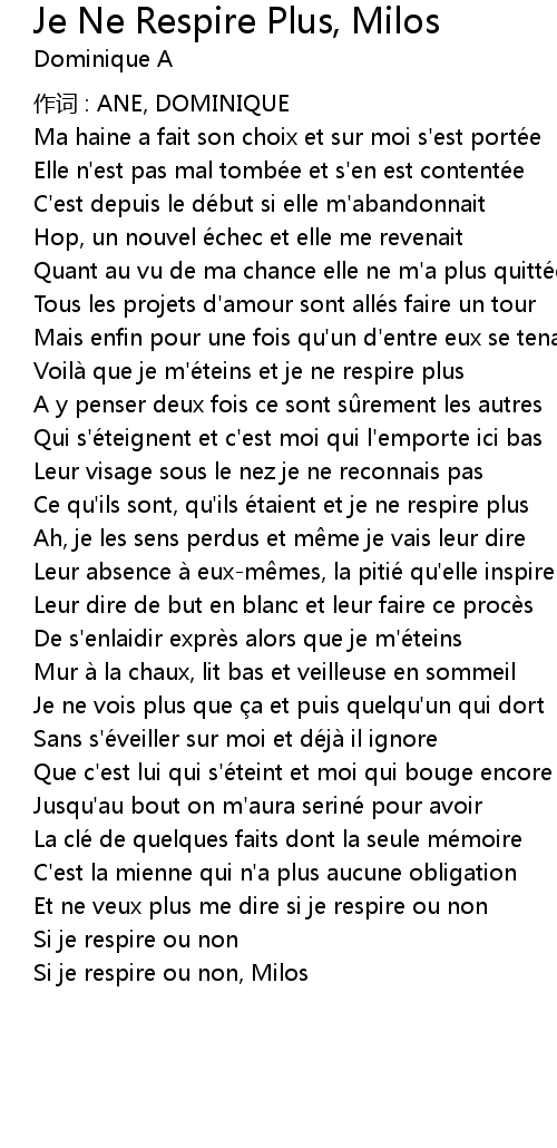 | 歌曲 | Je Ne Respire Plus, Milos |