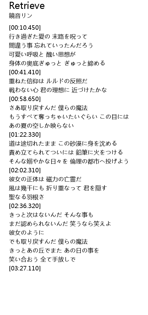 | [00:49.340] | 戦わない心 君の理想に 近づけたかな |