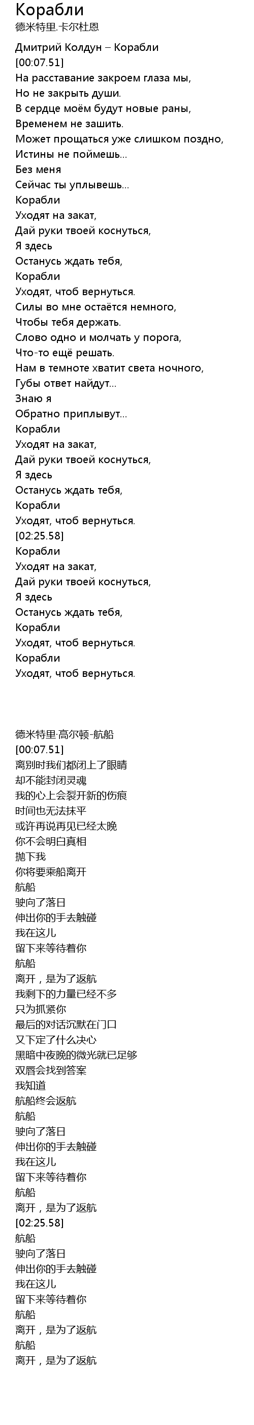 | [00:02.24] | Дмитрий Колдун – Корабли |