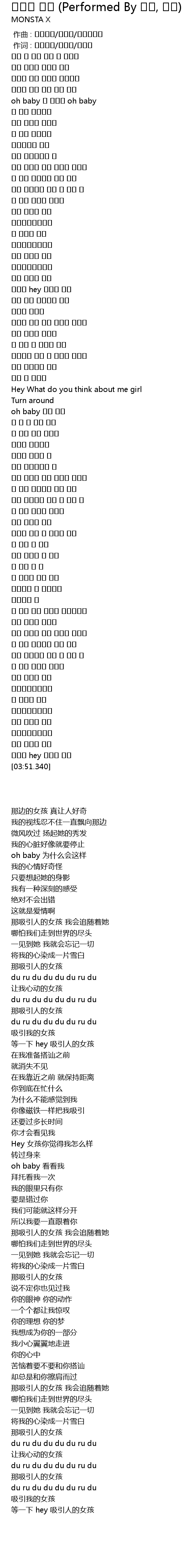 | [03:41.620] | 吸引我的女孩 |