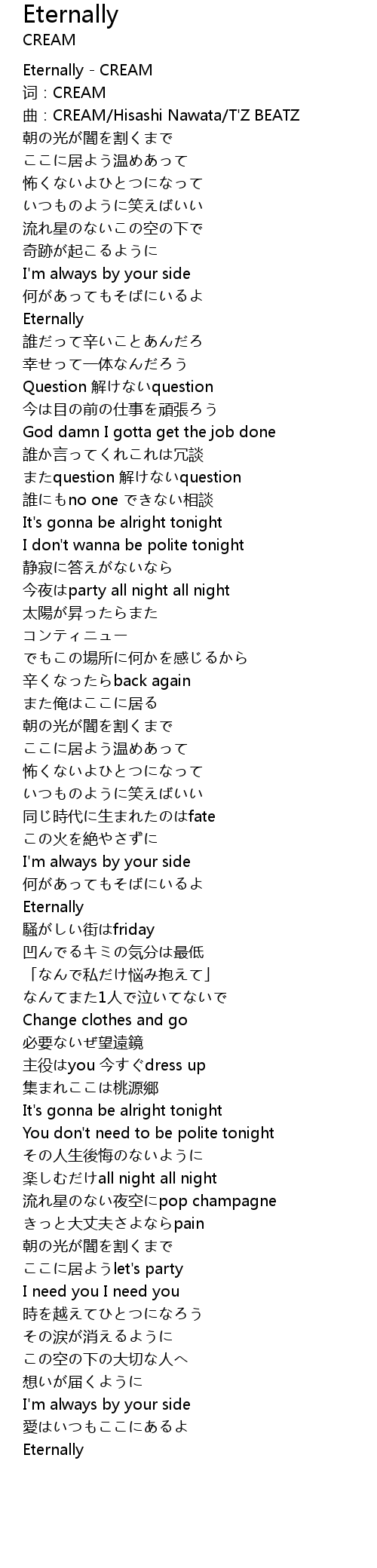 | [00:00.100] | Eternally CREAM |