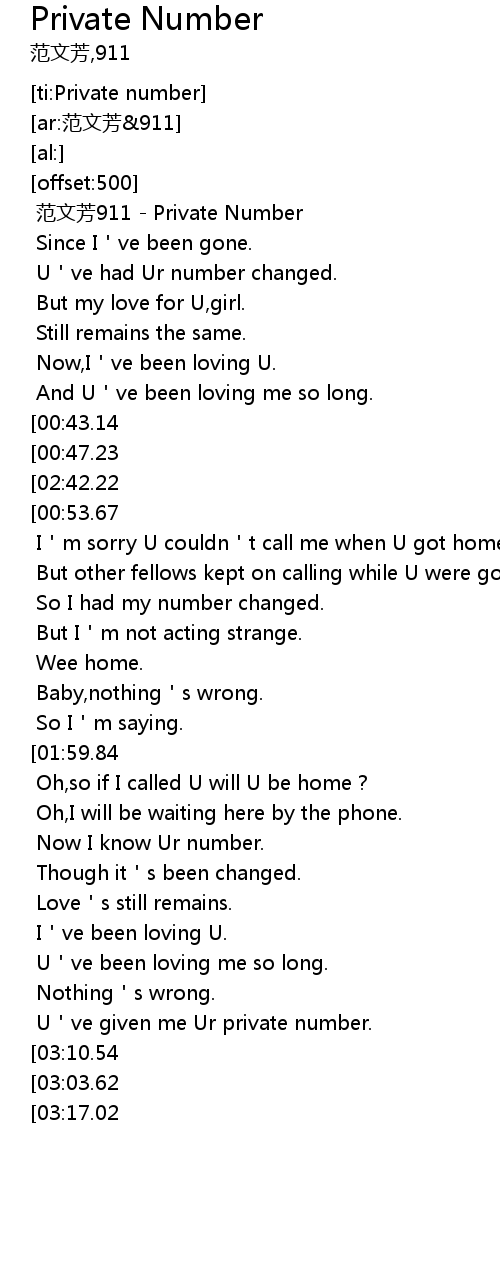 | [02:46.91][01:59.84][01:50.43] | U can have my private number. |