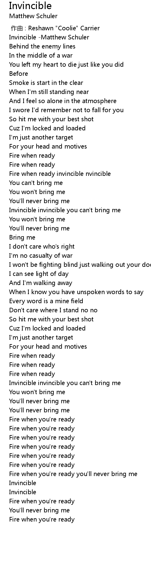 | [00:00.00] | Invincible -Matthew Schuler |