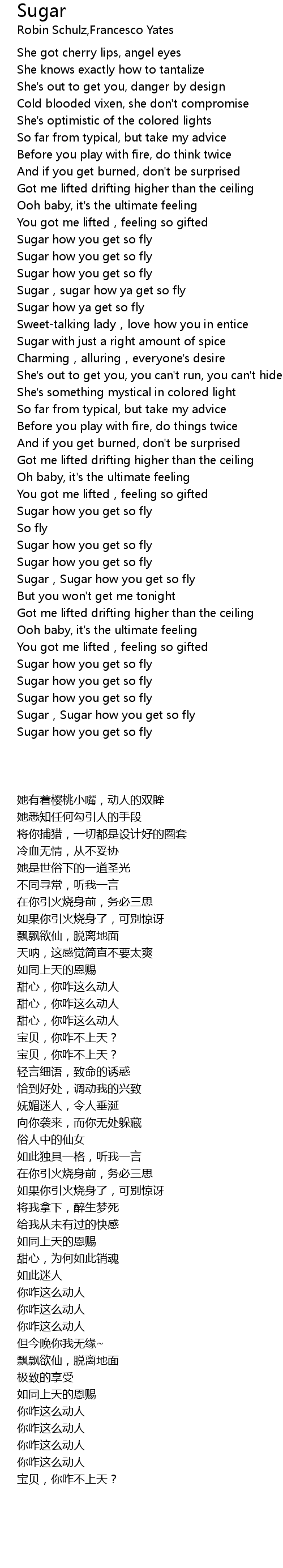 | [01:14.200] | Sugar how you get so fly |