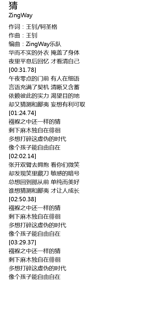 | [00:18.54] | 编曲:ZingWay乐队 |