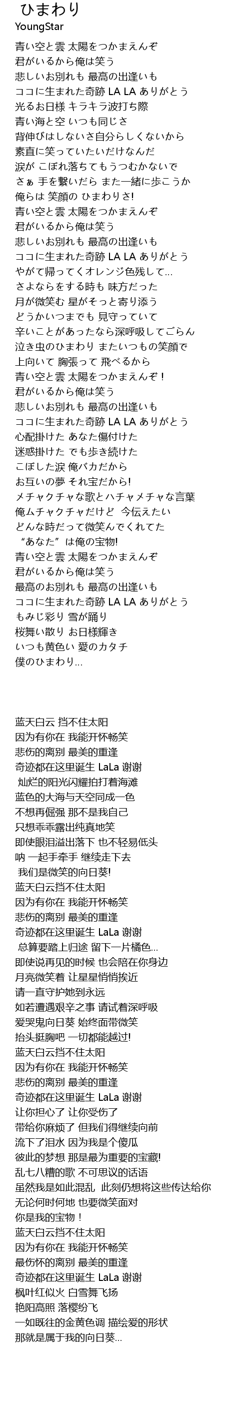 | [01:32.99] | 俺らは 笑顔の ひまわりさ! |