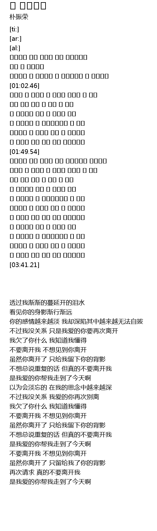 | [03:24.27] | 다시한번 말 하지만 제발 날 떠나지마 |