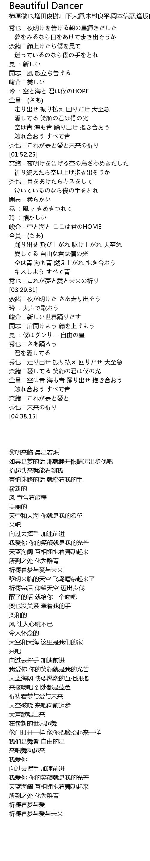| [03:52.60] | 晃 :僕はダンサー 自由の星 |