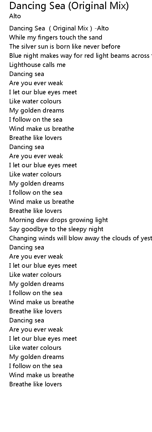 | [00:00.98] | Dancing Sea Original Mix Alto |