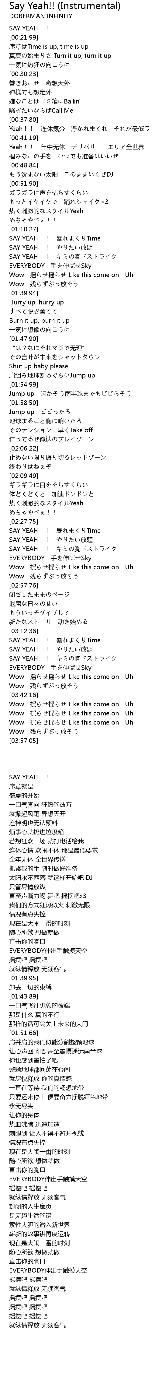 | [03:12.37] | SAY YEAH!! 暴れまくりTime |