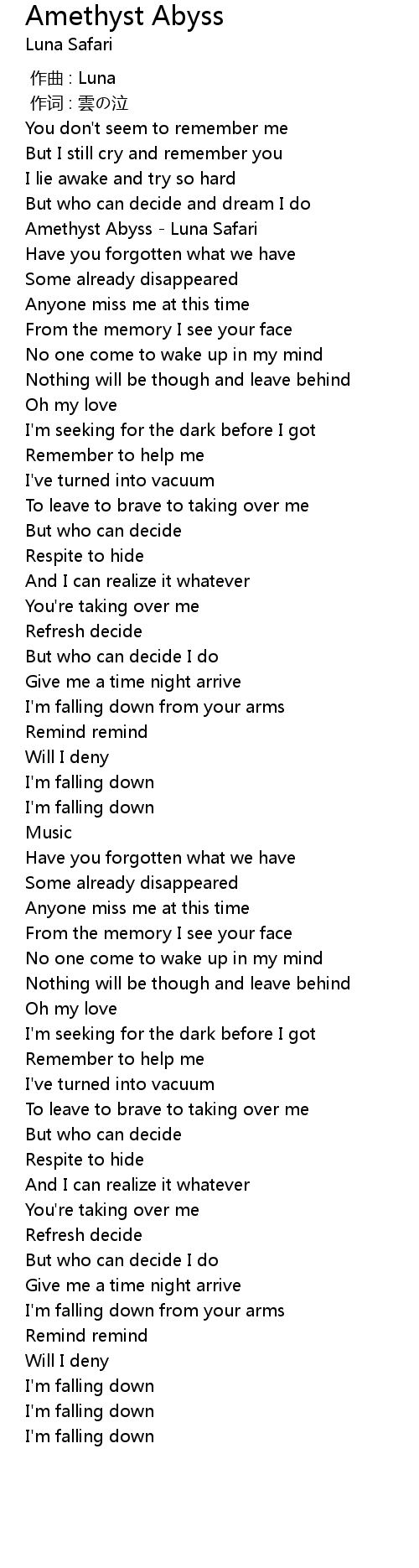 | [00:24.78] | Amethyst Abyss Luna Safari |