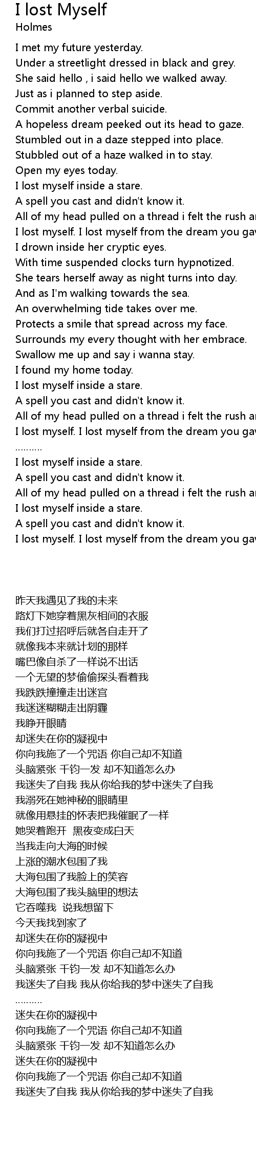 | 歌曲 | I lost Myself |
