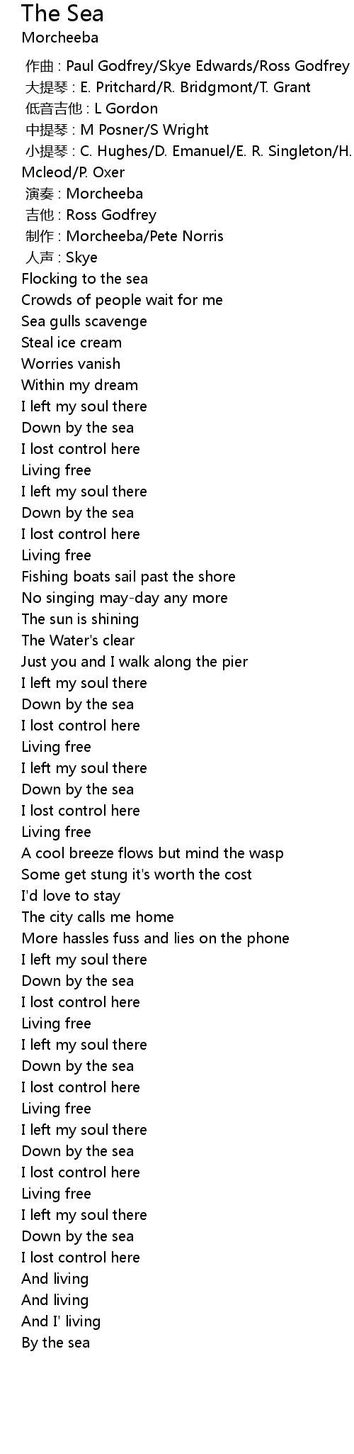 | [04:33.92] | By the sea |