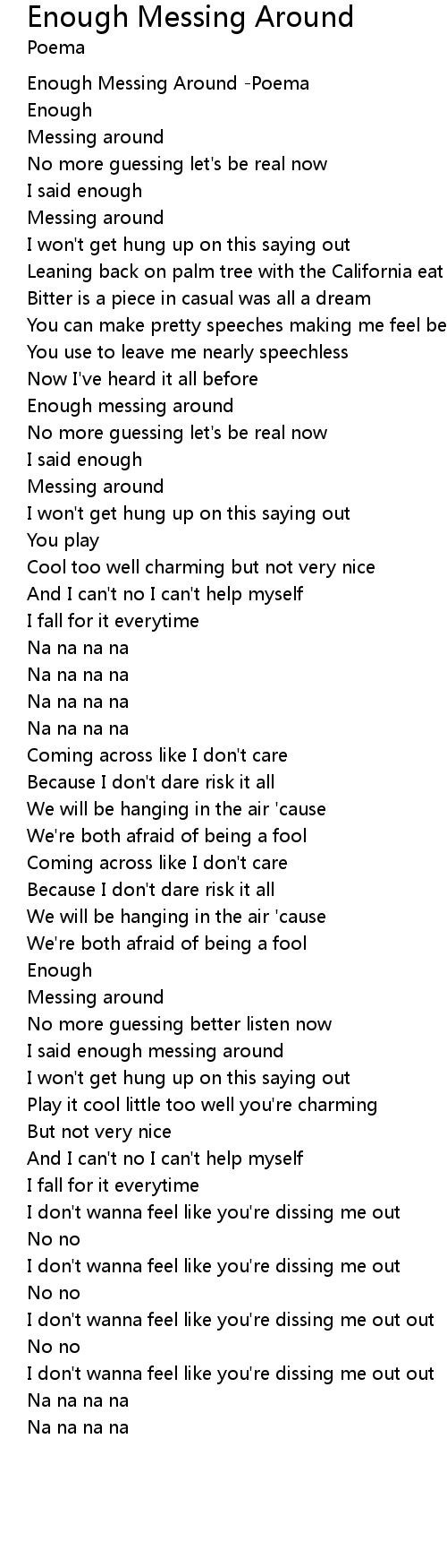 Enough Messing Around -Poema |