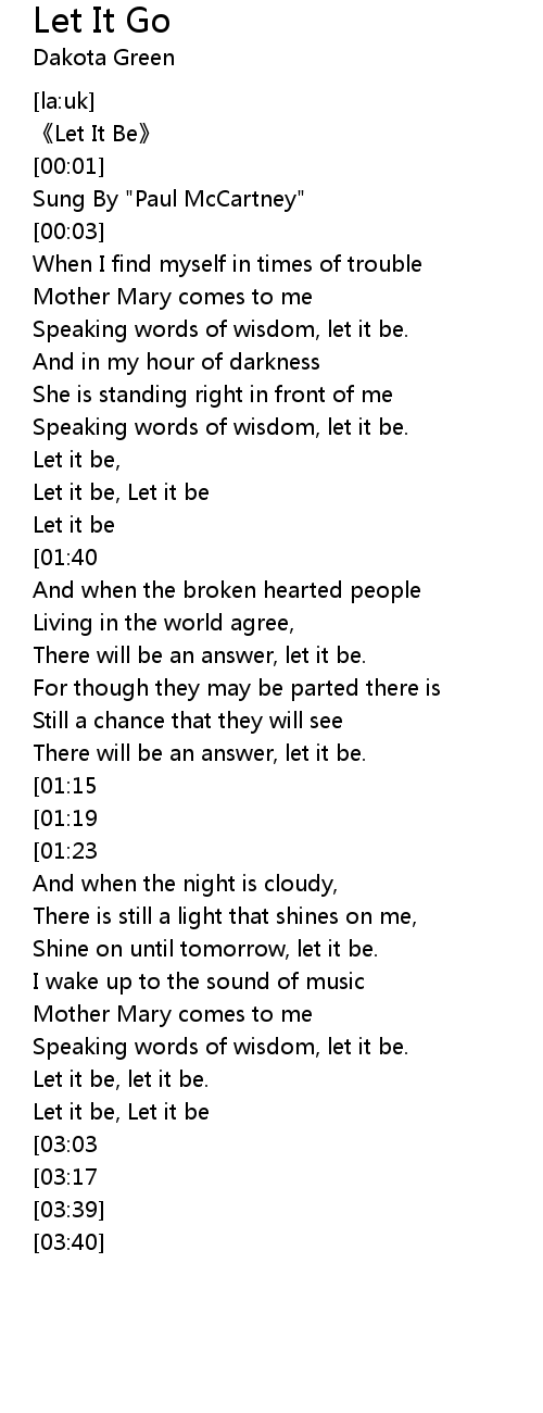 | [03:34][03:17] | Let it be |
