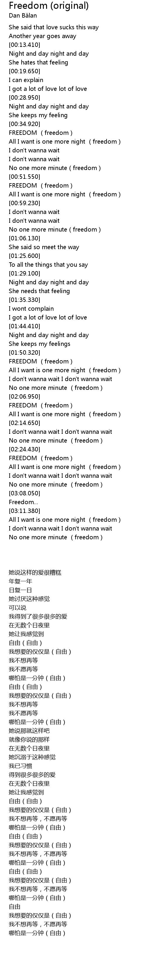 | [03:12.440] | All I want is one more night (freedom) |