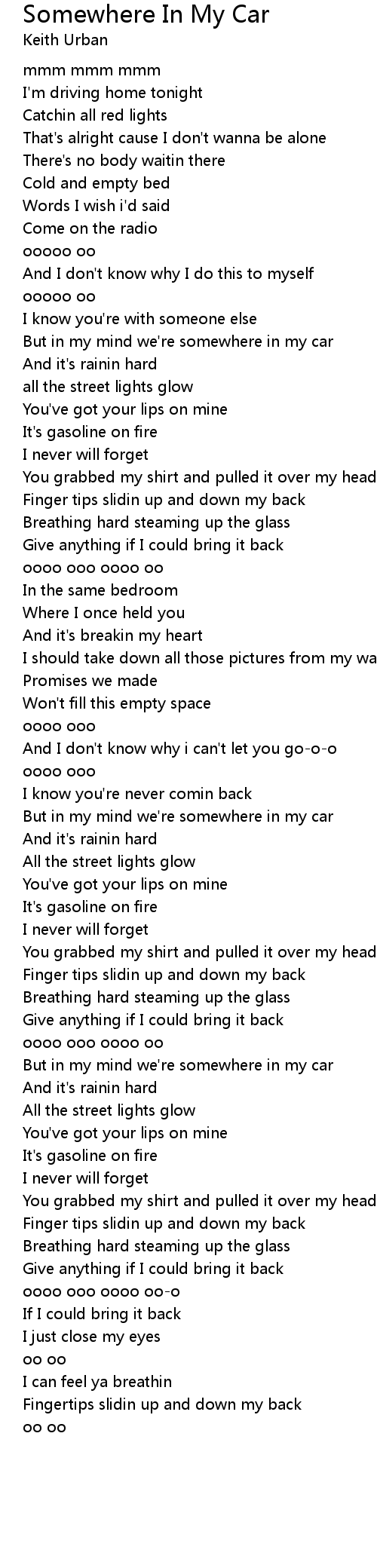 Somewhere In My Car 歌词
