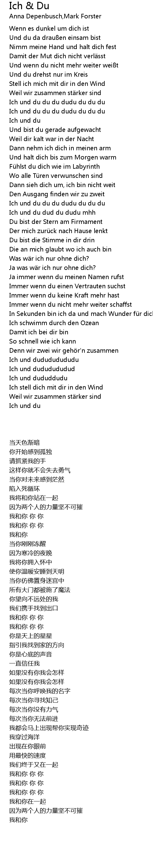 | [01:20.40] | Ich und du dud du dudu mhh |
