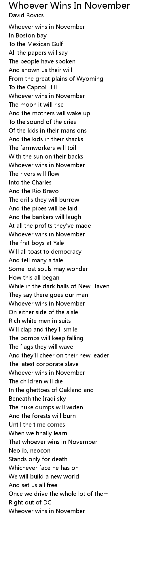 Wheover wins in November |
