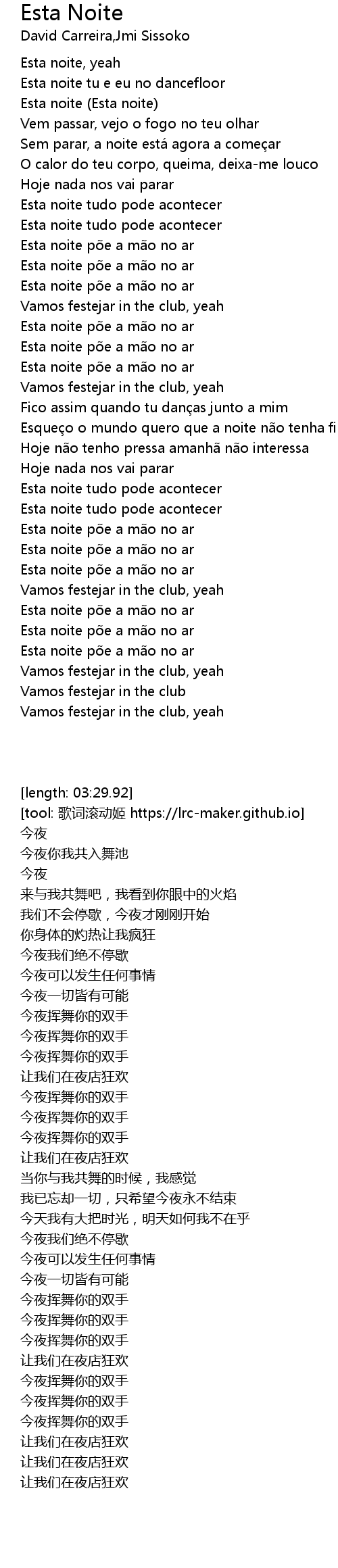 | [01:26.39] | Esta noite põe a mão no ar |