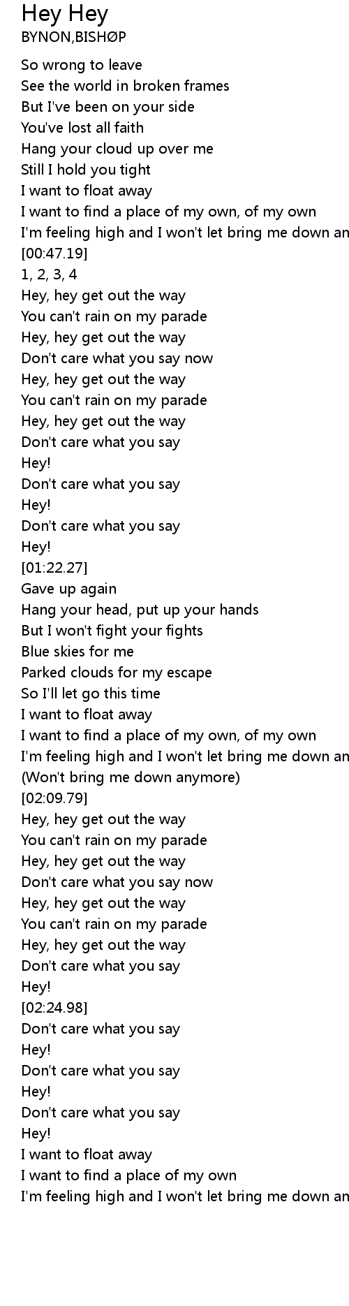 | [01:02.44] | Hey, hey get out the way |
